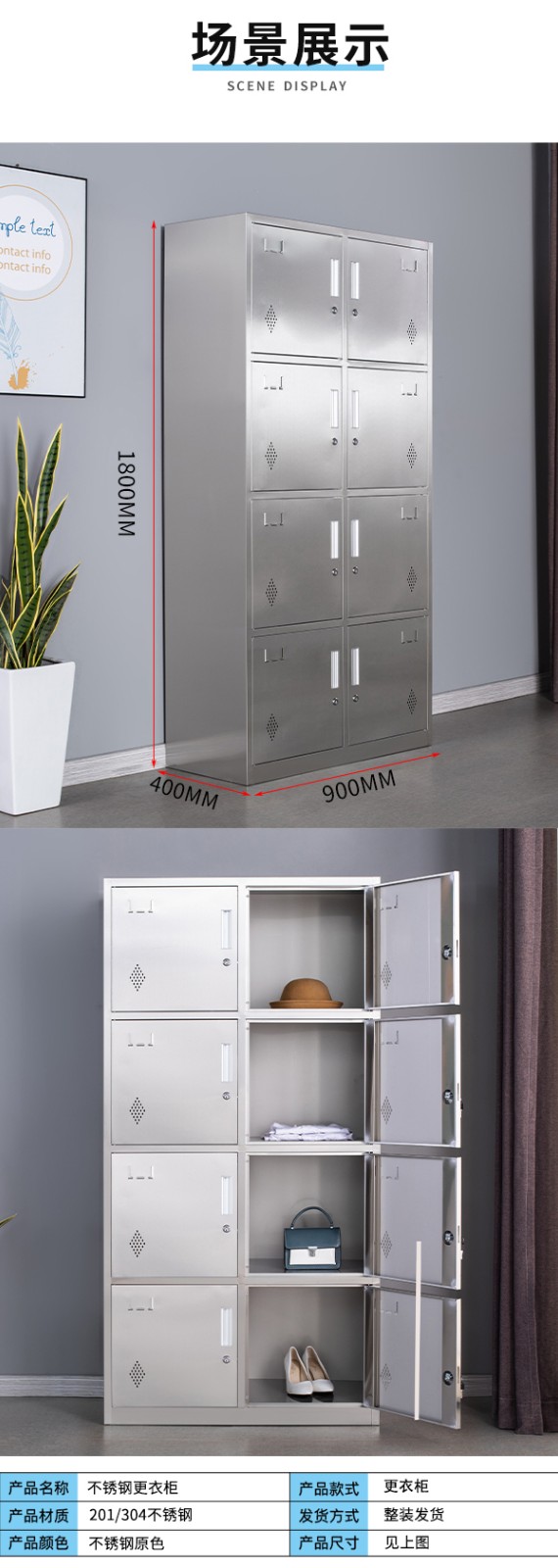不锈钢更 衣柜8门